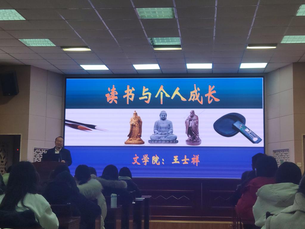 王士祥的报告内容充实、思路清晰、风趣幽默,现场同学纷纷表示受益匪浅,坚定了更加热爱读书,做“腹有诗书气自华”新时代文艺青年的信心。