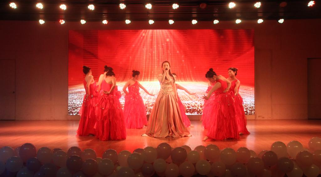 晚会集舞蹈、歌曲串烧、小品、相声、诗歌朗诵等多个各具特色的节目于一体,还穿插听歌识曲、微信抽奖等游戏互动环节,形式多样,异彩纷呈。DF舞社带来的开场舞蹈拉开晚会序幕,歌伴舞《天耀中华》是我们献给祖国的贺礼,愿我中华与天不老;群口相声《新语新说》妙语连珠,引得全场观众笑声连连;由毕晋老师演唱的歌曲《等你下课》带我们重回青葱岁月;诗歌朗诵《我的中国心》以激昂的旋律诵出学子们对祖国的款款深情;流行舞曲《野狼disco》夺人眼球,将现场晚会气氛推向高潮;朱国伟老师带来的歌曲《再见了,大别山》唱出了人民对大别山的深厚感情;爆笑又饱含温情的小品《你的模样》、魅力四射的舞蹈串烧、悦耳动听的歌曲串烧引爆全场。最后,晚会以歌曲《我们都是追梦人》圆满落幕,晚会获得在场观众一致好评。