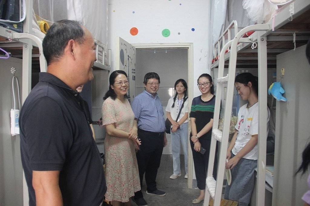 走访过程中,老师们与大家亲切交谈,对同学假期生活进行了解,认真聆听同学们时隔八个月返回师院的感受,了解住宿条件,希望同学们尽快适应学校环境,积极调整好学习状态,以积极的学习状态迎接新学期,在新学期里更加努力,继续奋斗。在这次走访中,领导和老师们了解到同学们的宿舍生活,看到同学们在宿舍认真学习、积极打扫卫生,感到十分欣慰。同学们感受到领导和老师们的关心,为炎热的夏天送来清爽。