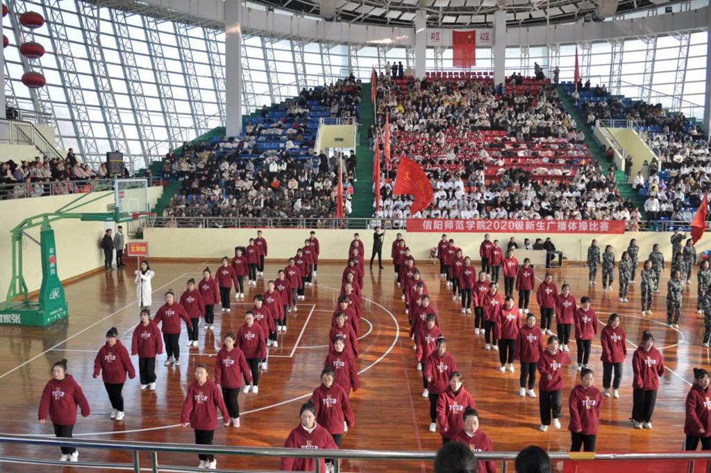 (本网讯 焦蒙蒙 孙晓娜 陈倩玉)为贯彻《中共中央国务院关于加强青少年体育增强青少年体质的建议》和习近平同志系列讲话精神,并落实《教育部高等学校体育工作基本标准》和《河南省普通高等学校体育工作十项规定》,进一步激发青少年秉承先辈精神、发扬责任意识、锻炼身体增强体质的热情。11月29日下午两点半*成人动漫 参加了在体育馆举办的以“抗击疫情,增强体质,走向操场,课外运动”为主题的信阳师范学院2020级新生广播体操大赛。