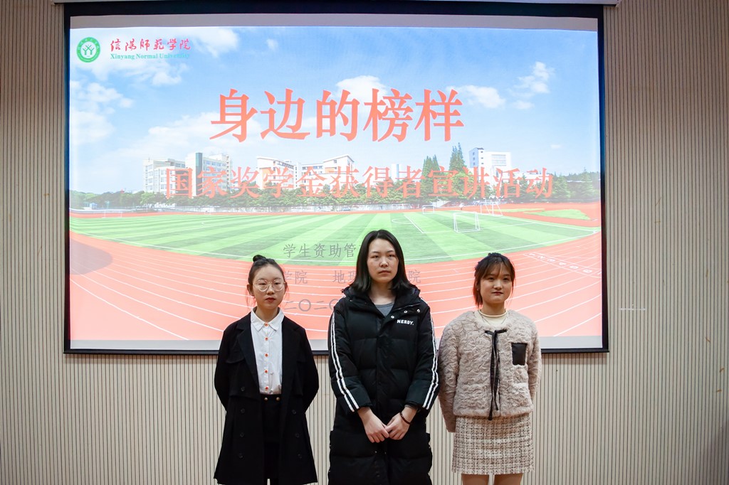 (本网讯 任素伶 白果 刘同卓)为树立榜样,引导全校学生共同进步,用榜样人物事迹激励广大师院学子,12月18日晚,由学生处资助中心统一规划,*成人动漫 联合地理科学学院共同筹办的本次“身边的榜样”宣讲活动于人文楼报告厅成功举办。本次宣讲活动由*成人动漫 辅导员柳家琪主持,三位国家奖学金获得者、*成人动漫 以及地理科学学院20级新生代表共同参加。