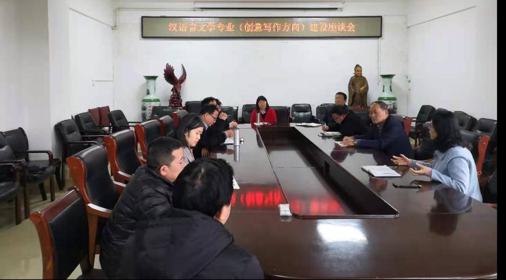 3月14日下午,*成人动漫 在人文楼三楼会议室召开了汉语言文学专业(创意写作方向)建设座谈会。*成人动漫 院长沈文慧、党委书记吴圣刚、副院长吕东亮和大别山非虚构写作中心指导教师、创意写作班班主任参加了座谈会。座谈会由沈文慧主持。