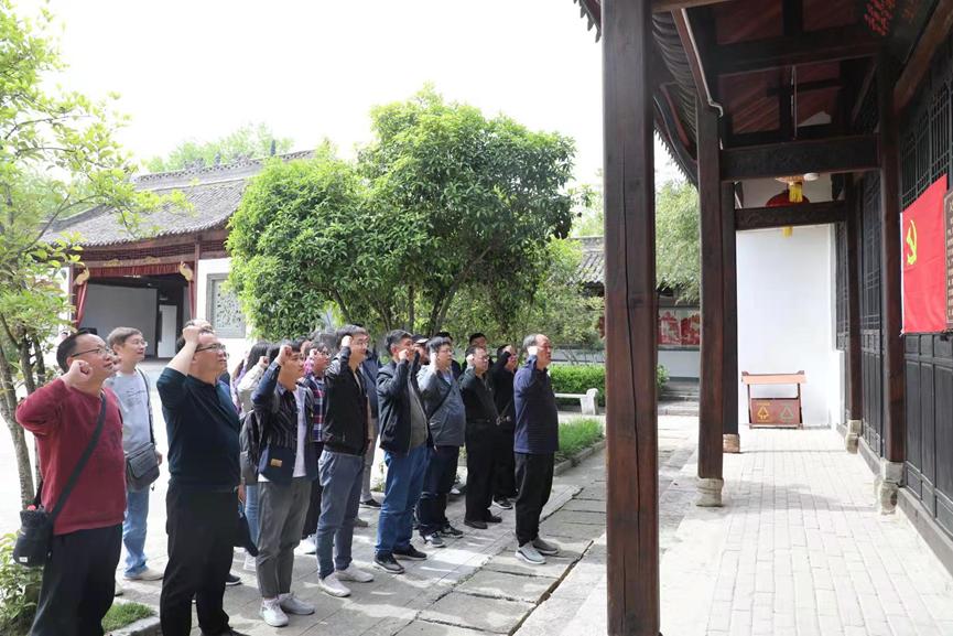 在王大湾会议旧址这片红色热土上,全体教师党员满怀敬仰之情认真聆听讲解,仔细参观遗迹,深刻了解当年刘邓大军挺进大别山期间所经历的重重艰难险阻和运筹帷幄扭转战局的丰功伟绩。王大湾会议是刘邓大军千里跃进大别山初期由于缺乏作战经验、纪律松散导致作战接连失利的生死存亡紧要关头召开的一次重要会议,被称为解放战争时期的“古田会议”。全体教师党员在这里向革命英雄庄严致敬,在党委书记吴圣刚的带领下重温入党誓词,在谆谆誓言中追溯红色记忆,筑牢初心使命。