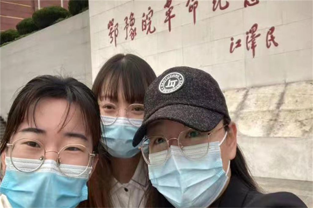 第一站,雷靖雯、梁宇、丁慧敏、岳靖等党员一同前往鄂豫皖革命纪念馆。在馆中最令她们感到震撼的是那面“英雄墙”,在这面墙上展示了在革命战争中英勇牺牲的英雄们的相片,雷震、颜东山、程启文、吴焕先……是先烈们不畏生死,抛头颅、洒热血的征战才换来我们今天的幸福生活。我们要进一步发扬中国共产党人不畏牺牲、乐于奉献的大无畏精神,自力更生、艰苦奋斗的创业精神,赓续中国共产党人的精神命脉,始终保持革命者百折不挠的斗志和品质。