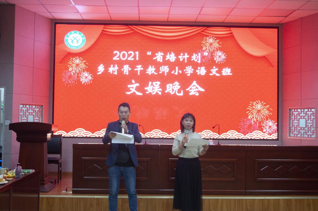 10月21日晚19时,“省培计划”小学语文乡村骨干教师文娱晚会在综合楼605顺利举行。晚会由萧晟洁老师主持,培训学员及学生助理欢聚一堂,共同参与并观看此次晚会。