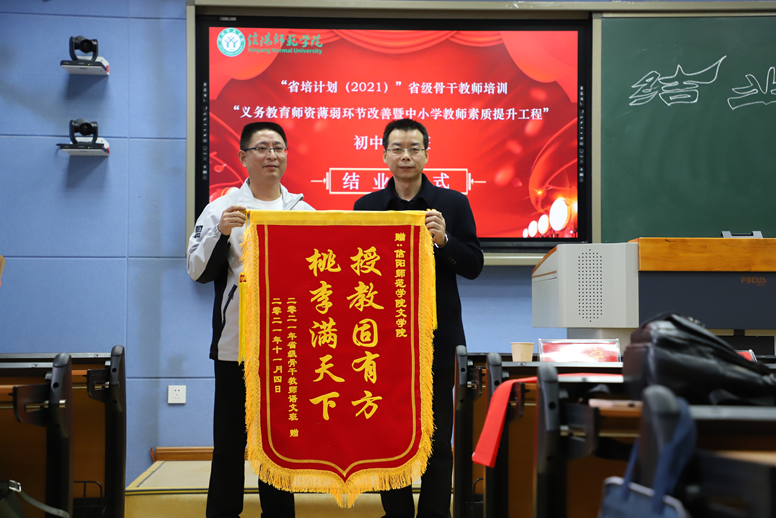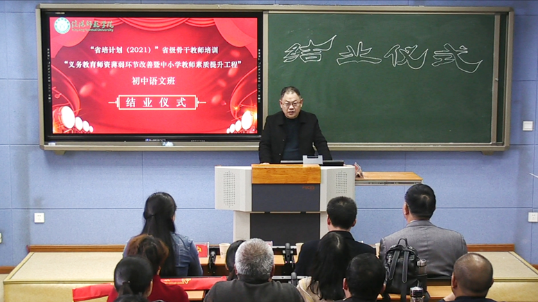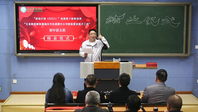 11月4日下午,信阳师范学院*成人动漫 2021“省培计划”初中语文班结业仪式暨学员答谢会在人文楼407顺利举行。本次结业仪式由初中语文班班长吴东峰主持,出席领导有*成人动漫 党委书记王振海、*成人动漫 教学副院长缑广飞、培训项目首席专家杨传凯及培训项目班主任刘宁。