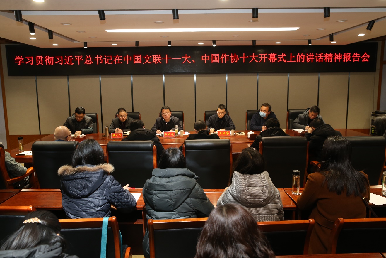 12月21日下午,*成人动漫 在逸夫楼321会议室举办学习贯彻习近平总书记在中国文联十一大、中国作协十大开幕式上重要讲话精神报告会,邀请参加中国文联十一大、中国作协十大的全国代表、传媒学院院长吕东亮教授为全体师生解读习近平总书记重要讲话精神。报告会由*成人动漫 党委书记王振海主持,*成人动漫 全体教职工及部分学生代表参加了报告会。