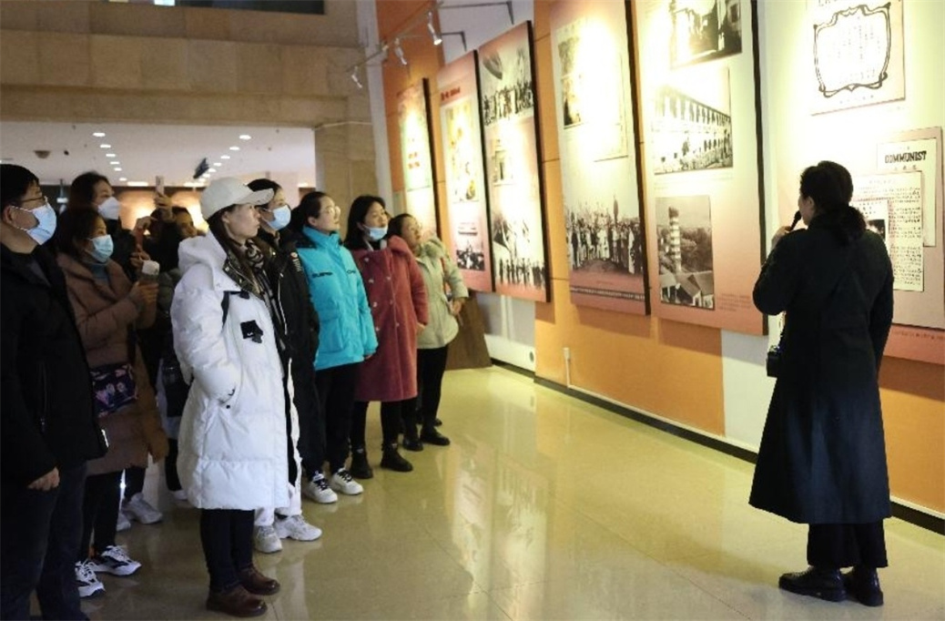 12月25日下午,“省培计划(2021)”乡村骨干教师初中语文培训班学员在班主任朱敏霞的带领下,前往信阳市鄂豫皖革命纪念馆参观,上了一堂“行走的”思政课。