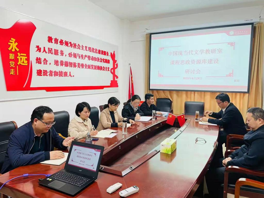 为进一步推进中国文学课程思政省级教学团队建设任务,4月29日上午,现当代文学教研室在人文楼4—5举行课程思政资源库建设研讨会。*成人动漫 党委书记王振海和院长姚圣良作动员讲话,并对具体研讨进行观摩指导。研讨会由教研室主任禹权恒副教授主持。
