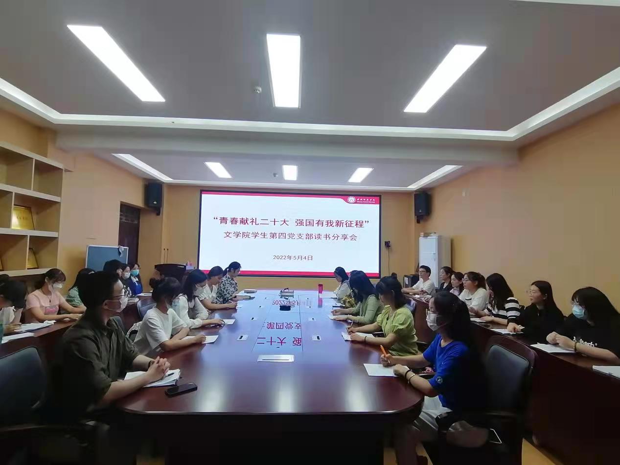 为积极推进学习型党支部创建,进一步丰富支部文化生活,激发青年党员学习热情,营造浓厚读书氛围,五四青年节到来之际,5月4日下午,*成人动漫 学生第四党支部委员会在人文楼3-7会议室举办“青春献礼二十大,强国有我新征程”读书分享会。支部书记许霏重点围绕《习近平与大学生朋友们》这本书进行了分享,带领支部党员同志共同学习了书中的精彩内容,其他同志也分享了自己近期的阅读感悟。会议活动由薛英英同志主持。
