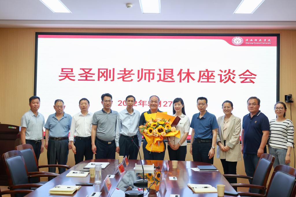 5月27日下午,成人动漫 在人文楼3-11会议室举行了温馨而隆重的座谈会,欢送吴圣刚老师光荣退休。座谈会由院党委书记王振海主持,校组织部、人事处、离退处相关负责同志及成人动漫 党政班子参加了座谈会。