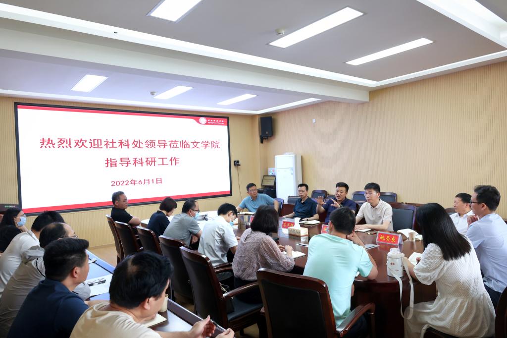 6月1日上午,社科处处长李军辉带队莅临*成人动漫 指导科研工作,在人文楼三楼会议室就国家级科研项目申报、科研著作出版资助等相关问题与*成人动漫 教师进行座谈。座谈会由*成人动漫 党委书记王振海主持,*成人动漫 院长姚圣良、副院长徐洪军及10余名相关老师参加了座谈。