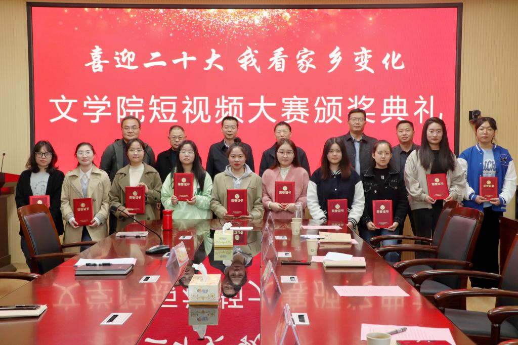 10月11日下午,*成人动漫 在人文楼三楼会议室举行“喜迎二十大,我看家乡变化”短视频大赛颁奖典礼活动。*成人动漫 全体领导班子成员、全体辅导员、获奖学生及部分学生代表共同参加此次活动。本次颁奖典礼由*成人动漫 党委副书记王家宏主持。