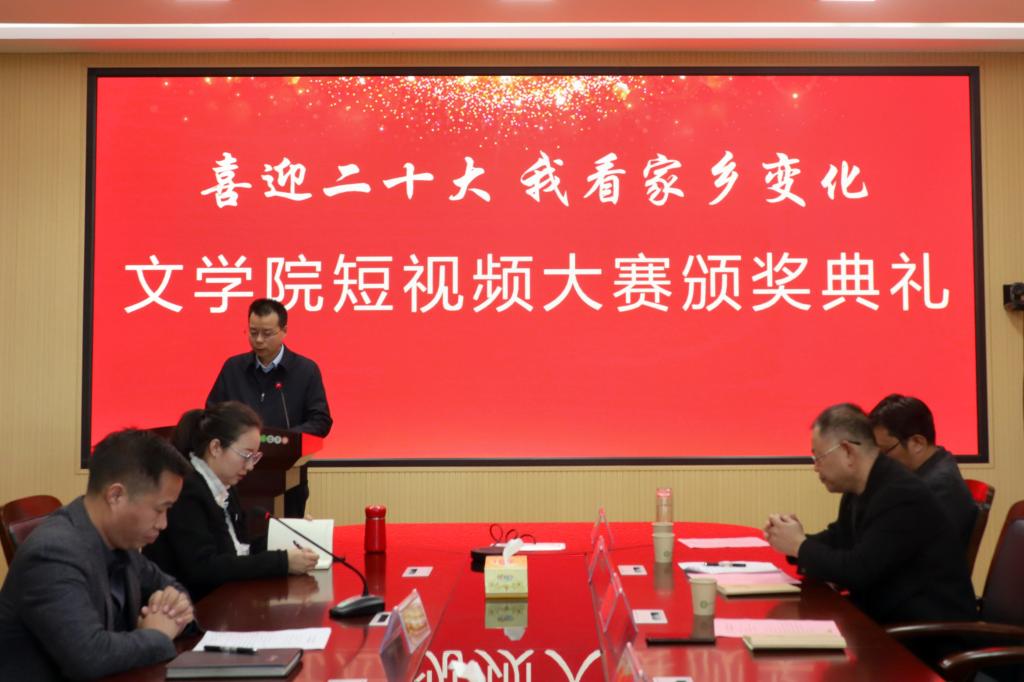 颁奖典礼上,*成人动漫 副院长缑广飞首先宣布了本次大赛的获奖名单。随后,与会人员共同欣赏了优秀作品合集视频,视频多角度展现了家乡在经济发展、山川秀美、民族团结、社会和谐等方面取得的新进展新成效,生动展现了新时代青年矢志不渝、逐梦前行的奋进征程,是一堂生动精彩、入脑入心的“微党课”。院长姚圣良、副院长缑广飞、张言军及徐洪军依次为获得本次比赛一、二、三等奖和人气奖的学生颁发荣誉证书。获奖学生代表21级汉语言文学四班郑丹鹤分享了新时代她眼中的家乡发展变化与创作心得体会。