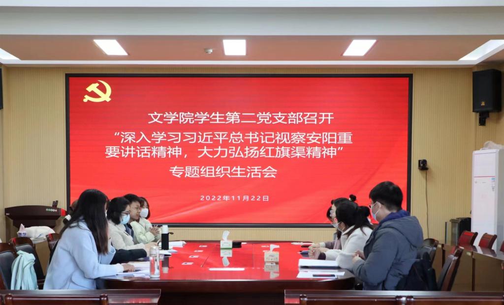 为深入学习贯彻党的二十大精神和习近平总书记视察河南安阳重要讲话精神,深刻领会红旗渠精神的丰富内涵和时代价值,11月24日,*成人动漫 学生第二党支部在人文楼三楼会议室召开专题组织生活会,会议由支部书记郭子悦主持。