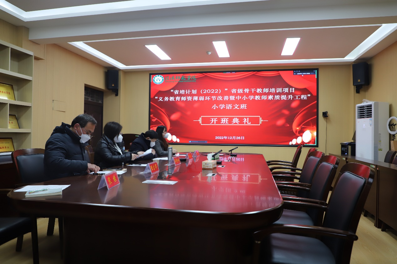 2022年12月26日上午,*成人动漫 “省培计划”骨干教师培育项目小学语文研修班开班仪式在线上线下同步举行,160名学员线上参加了开班典礼。信阳师范学院河南省中小学教师校长研修院副院长兼教务处副处长韩艳婷、*成人动漫 党委书记王振海、院长姚圣良、副院长缑广飞、副院长张言军、研修班班主任刘宁、教务委员张姝出席典礼,典礼由王振海主持。