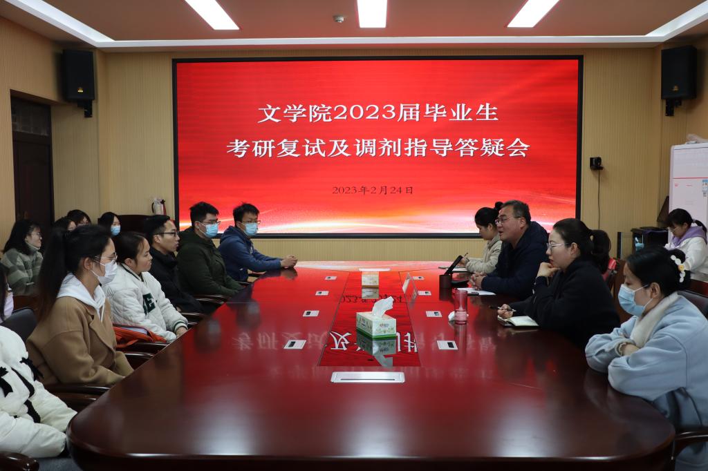 2月24日下午3点,*成人动漫 于人文楼3-7召开2023届毕业生考研复试及调剂指导答疑会,*成人动漫 副院长张言军、辅导员郭子悦老师以及*成人动漫 2023届考研毕业生参加,本次会议由*成人动漫 副院长张言军主持。
