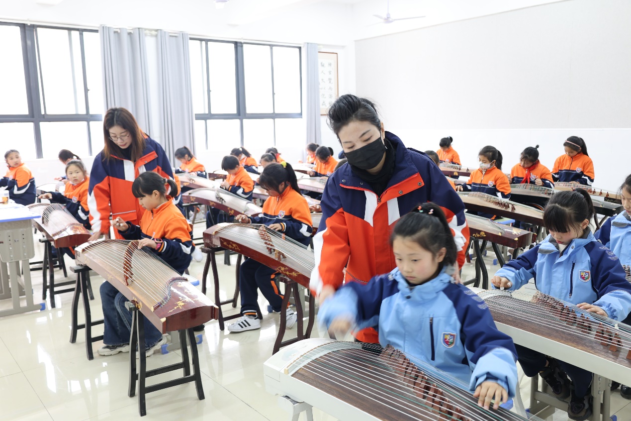 在信阳市羊山外国语小学,一百多名培训学员先后参观了彩虹楼梯、书香校园建设、葵园三梯两群落、展板以及古筝、科技、编程等社团。