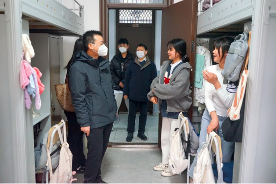 走访中发现整体宿舍环境整洁美观、宿舍具有“温馨 和谐 个性”的文化氛围,但少数宿舍也存在私接电源、乱挂衣物、乱丢垃圾现象。党委书记王振海叮嘱学生要自觉遵守宿舍管理规章制度,养成健康文明的生活习惯,妥善做好时间规划,做一个充满正能量、积极向上的时代新青年。姚圣良院长就宿舍环境、生活需要、学习情况等方面和学生展开亲切交流,叮嘱学生要养成良好的生活卫生习惯,保持积极向上的心理状态。