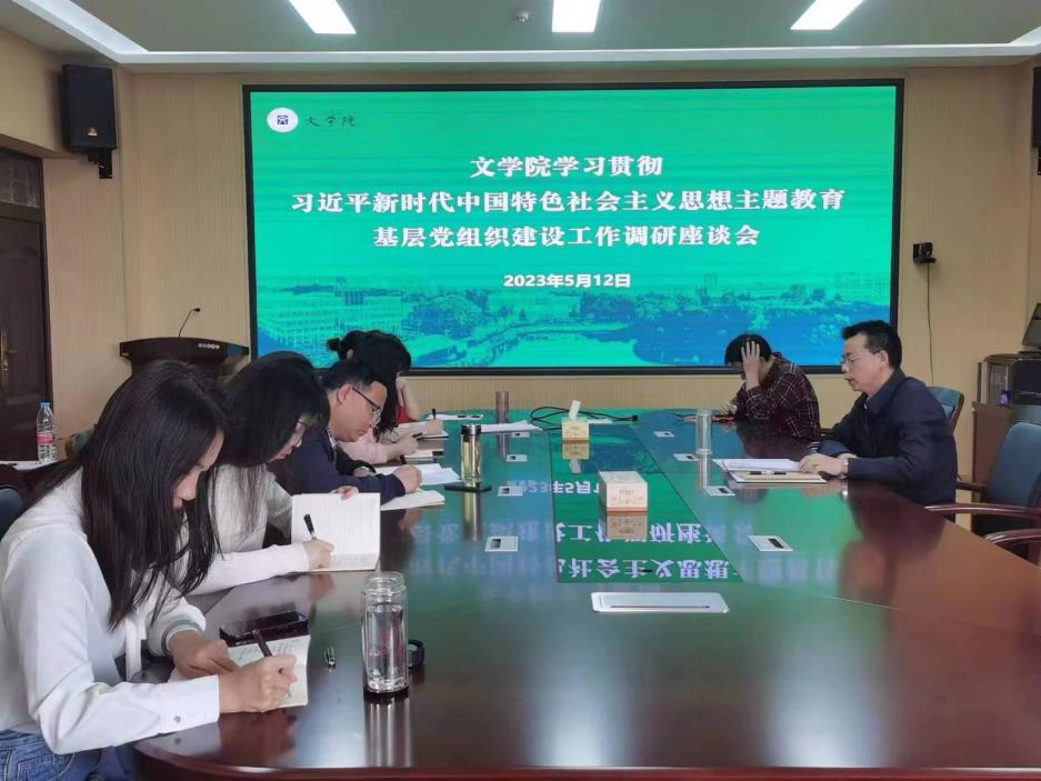 5月12日下午,*成人动漫 在人文楼3-7会议室召开学习贯彻习近平新时代中国特色社会主义思想主题教育基层党组织建设工作调研座谈会。*成人动漫 党委书记王振海主持会议,全体党支部书记共同参加。