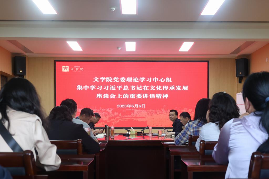 会上,党委书记王振海利用学院主题教育读书班,带领全体教师学习了习近平总书记在文化传承发展座谈会上的重要讲话,收看了相关新闻视频。随后,与会人员结合自身工作谈了体会,从不同角度就“担负文化使命,传承弘扬传统文化”作了交流发言。