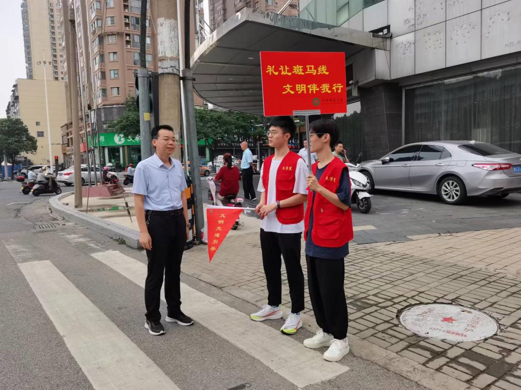 在活动中,志愿者身穿红色小马甲,手持小红旗,引导行人和来往车辆遵守交通规则、文明出行。同时,协助交警纠正骑电动车不戴头盔、驾驶车辆不礼让行人的违法行为。期间,王振海莅临现场指导志愿服务工作,并为志愿者带来饮品和防暑药品。王振海详细了解了志愿服务工作情况,鼓励志愿者积极践行志愿服务精神,彰显一流师范大学青年风采,为营造浓厚文明城市创建氛围做出贡献。
