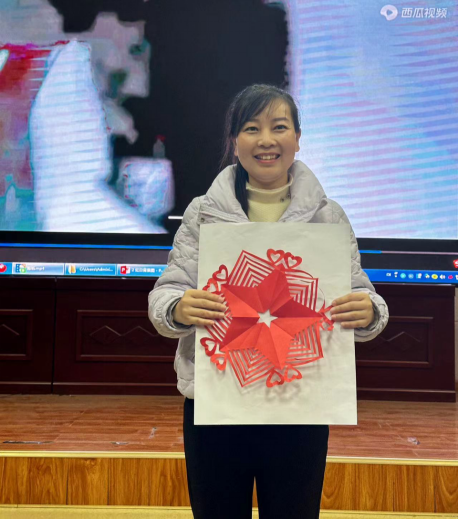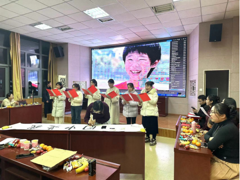 随后,老师们一一为大家表演《中华颂》《延安,我把你追寻》等朗诵节目,诵出了老师们对中华民族的热爱。除此之外,贾晓辉老师为大家展示“剪纸艺术”,体现出中华优秀传统文化的博大精彩,晚会洋溢着欢声笑语,氛围十分热烈。