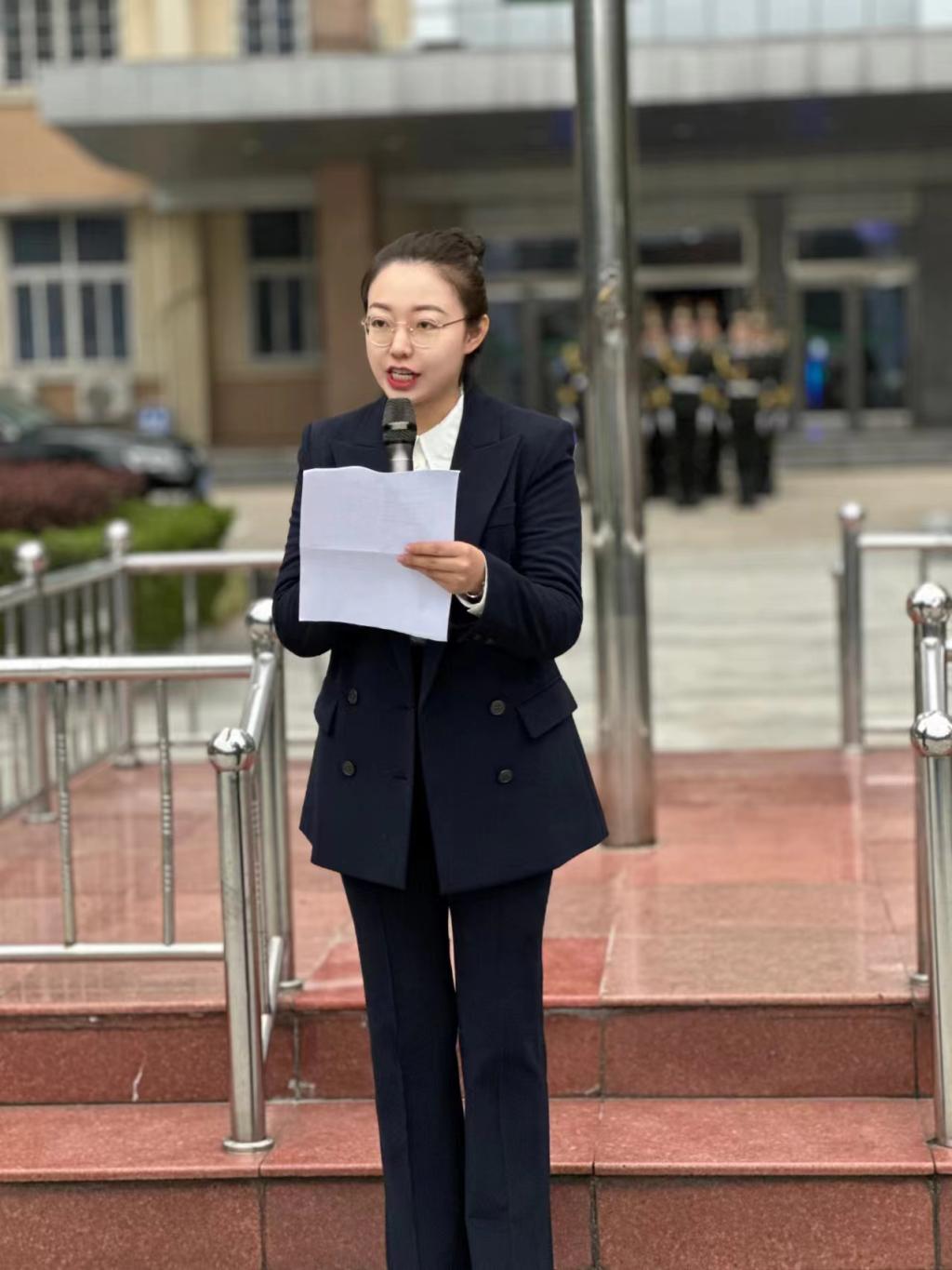 6时15分,升旗仪式正式开始。国旗护卫队迈着整齐划一的步伐,目光坚定地护送五星红旗到升旗台,伴随着铿锵有力的国歌响起,全体师生肃立行注目礼。升旗结束后,23级学生代表冯雨晨围绕“以青春之力,追寻时我之光”这一主题进行发言,他提出当代青年应于青春之路携手行,共赴时代新征程,以青春之力,创造青春之国家、青春之民族。随后,23级学生代表王若蔓进行诗歌朗诵“你是人间四月天”。紧接着,*成人动漫 辅导员郭子悦老师根据爱国精神来进行发言,她指出新时代青年应厚植爱国精神,将小我融入大我中,贯彻习近平新时代的方针政策,发扬实干精神,以爱国精神迎接新时代的呼唤。最后,22级学生代表祝会带领大家一起在国旗下宣誓。