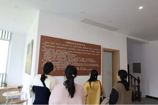 学员老师们率先走入的是叶楠白桦文学馆,这个文学纪念馆展示了当代著名文学家叶楠和白桦这对孪生兄弟的文学作品和有关活动的照片,还放映他们的电影作品。这里是郝堂村的一个文化活动场所,既增添了郝堂乡村建设的文化品位,又为广大村民提供了一个学习教育的平台。