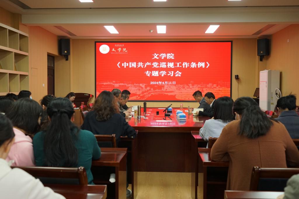 4月16日下午,*成人动漫 在人文楼三楼会议室举行《中国共产党巡视工作条例(以下简称《条例》)》专题学习会,*成人动漫 全体领导班子成员和全体教师参与学习。