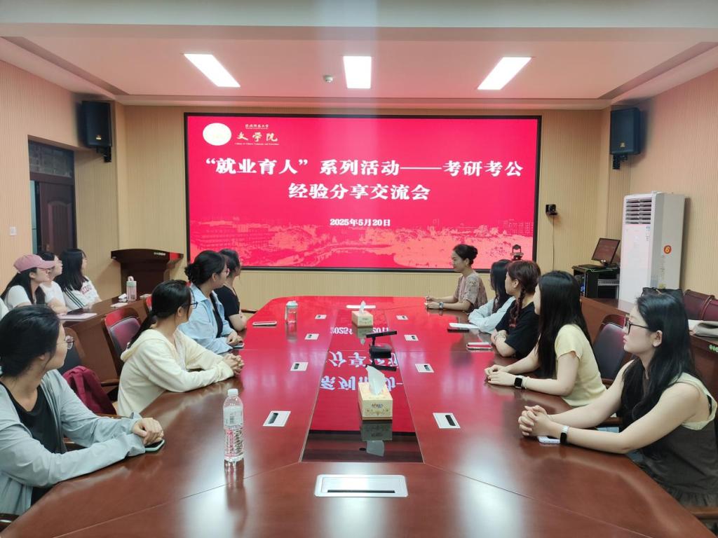 为加强学院学风建设,提升就业育人实效,帮助学生明确未来的发展方向和职业规划。5月20日晚,*成人动漫 于人文楼3-7会议室举办“就业育人”系列活动——考研考公经验分享交流会。会议由就业秘书崔越主持,邀请2021级王怡方、王贤、齐越、张梦婷4名考研考公上岸同学进行经验分享,2022级全体学生参加会议。