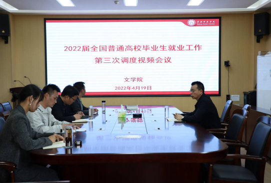 4月19日下午,为深入贯彻党中央、国务院“稳就业、保就业”决策部署,落实中央领导指示批示精神,抓住当前毕业生就业冲刺期,教育部召开了2022届普通高校毕业生就业工作第三次调度视频会议。*成人动漫 党委书记王振海、副书记王家宏、副院长徐洪军、就业秘书陈辉及辅导员崔越在3-7会议参加了视频会议。