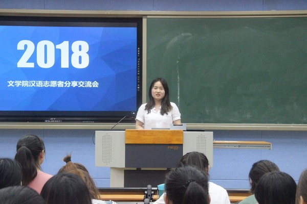 首先,学生会主持人张亚薇简要介绍周蕾、宋双鸽、王颖等即将赴泰同学的简况。随后,周蕾、宋双鸽、王颖依次与大家分享了自己参加选拔经历和体会。三位同学语言幽默、心态乐观,全方位介绍了选拔、培训过程中的报名、面试、培训、授课经验、角色转化以及责任与担当等方面的细节内容,并热情洋溢、耐心细致的解答了同学们的疑问,提醒大家关注相关信息、早做准备,鼓励大家抛弃胆怯、坚定信念,积极参与汉语志愿者的选拔。